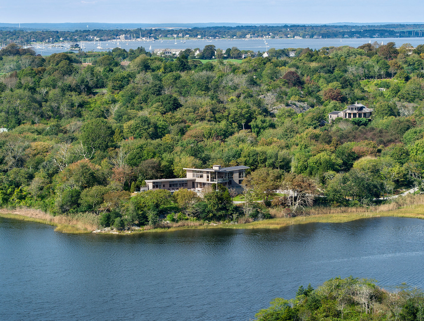 Ground up construction at tidal bay with floodplain restrictions. Complex structural and concrete. Pool integrated to house structure. European aluminum-clad windows and doors with wood interiors. Pre-weather cedar siding. Interior highlights include intricate metal and glass staircase, hickory wood floors and various wood species staining.
